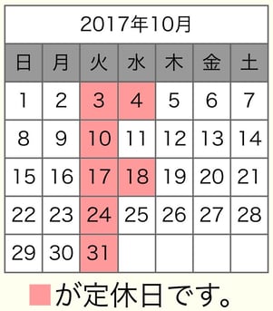 10月のお休みは平常通り