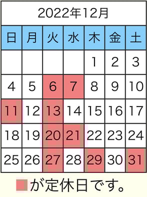お正月は12/31(土)~1/4(水)お休みをいただきます。